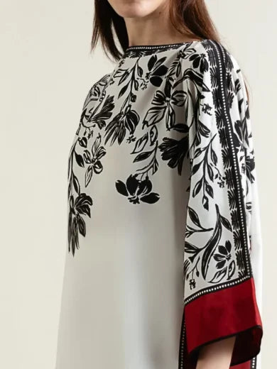 Product Details: Fabric: Soft Printed Crepe Neckline: Boat Neckline Sleeves: Batwing Sleeves Hemline: Straight Hem Design Details: Low side slits with bar...